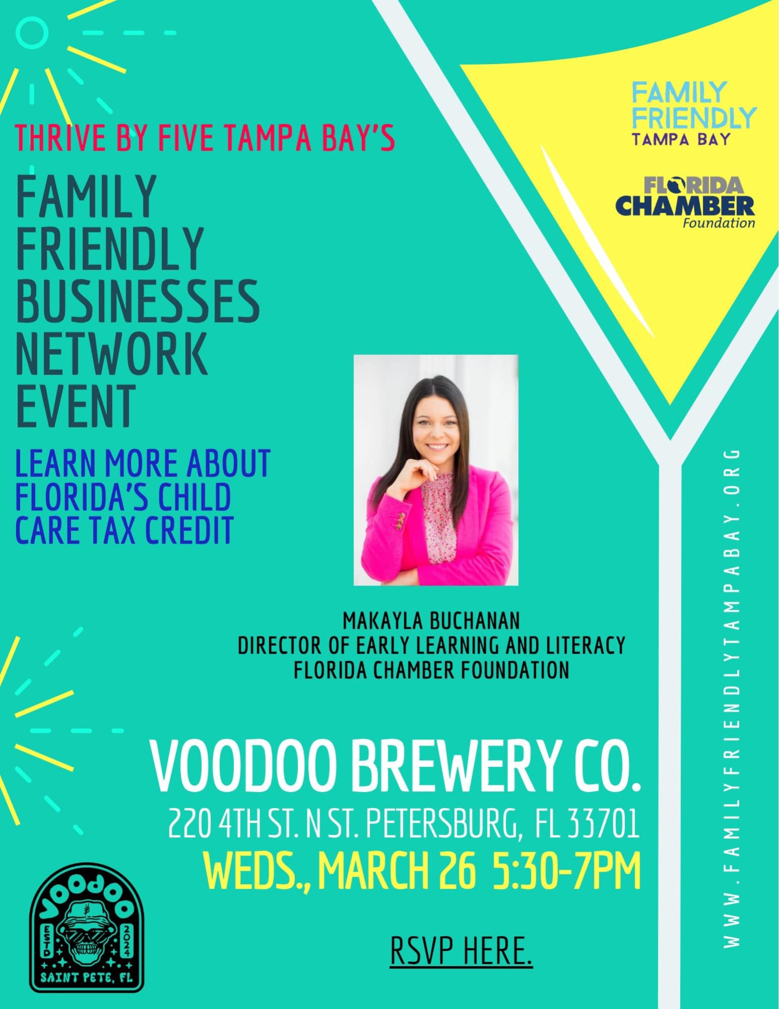 Learn more about how to be a certified "Family Friendly Workplace" through the Thrive by Five initiative at this networking event with a free drink provided by Voodoo Brewing. Light bites will also be available.