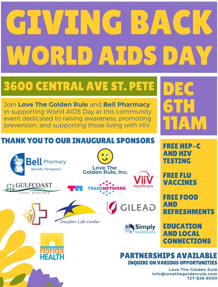 Join Love the Golden Rule and Bell Pharmacy in supporting World AIDS Day, at this community event dedicated to raising awareness, promoting prevention, and supporting those living with HIV.