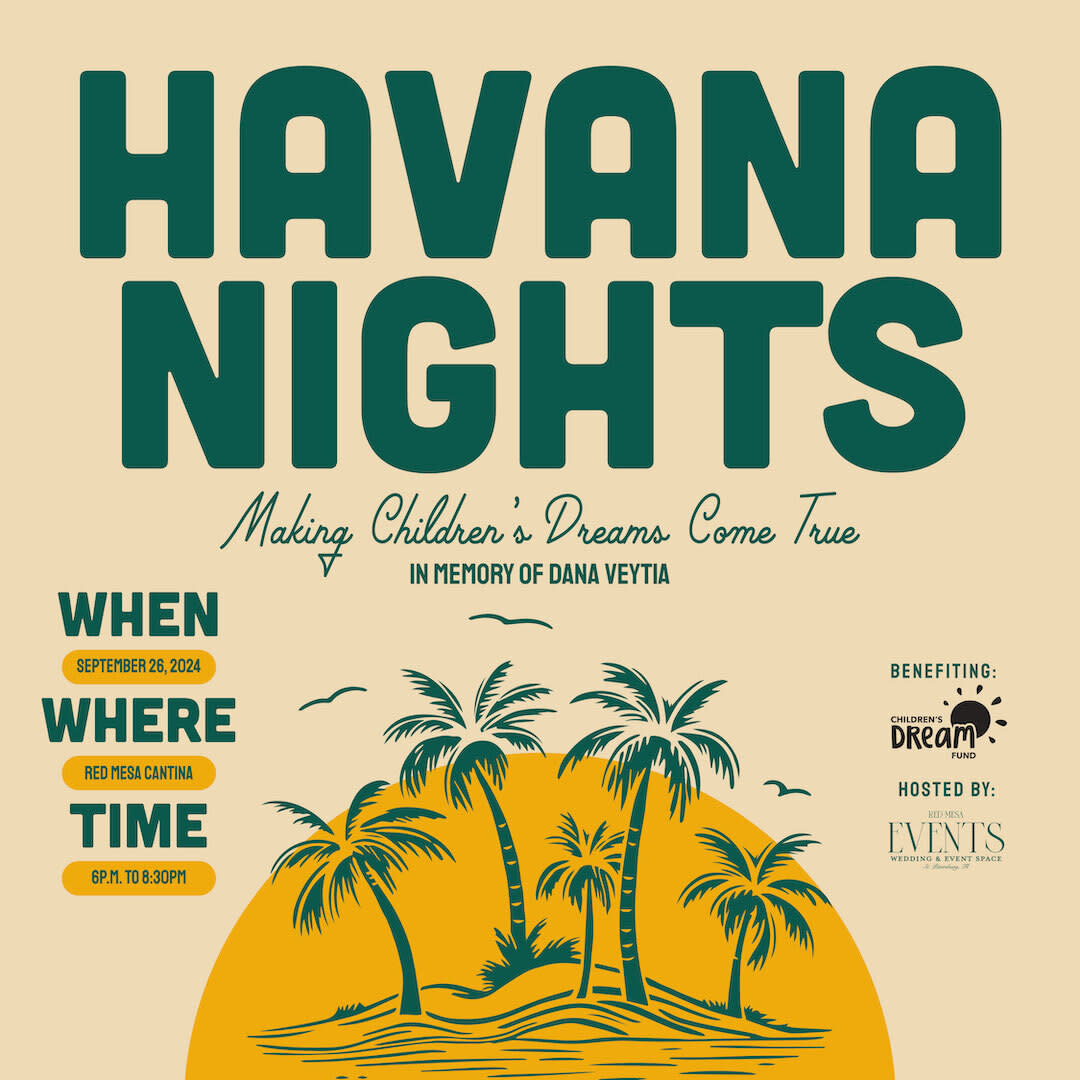 Join us for this year’s Havana Nights hosted by Red Mesa Events in memory of Dana Veytia. Havana-themed Light Bites | Signature Cocktails | Silent Auction | Raffle | Cash Bar Get tickets here: https://app.etapestry.com/onlineforms/ChildrensDreamFund/HavanaNights.htmlImages