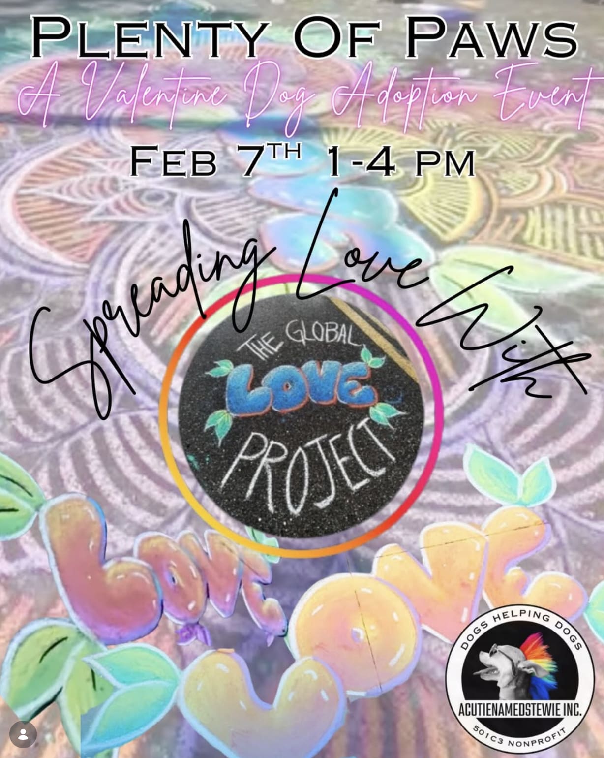 As always, The Global Love Project will be doing what we do best: spreading love loudly, boldly, and right where people walk. Since 2022, our mission has been to build sustainability and elevate the collective through messages of love written directly onto the streets and sidewalks of St. Pete. Plenty Of Paws marks week #208 of this ongoing journey — and we’re just getting started.