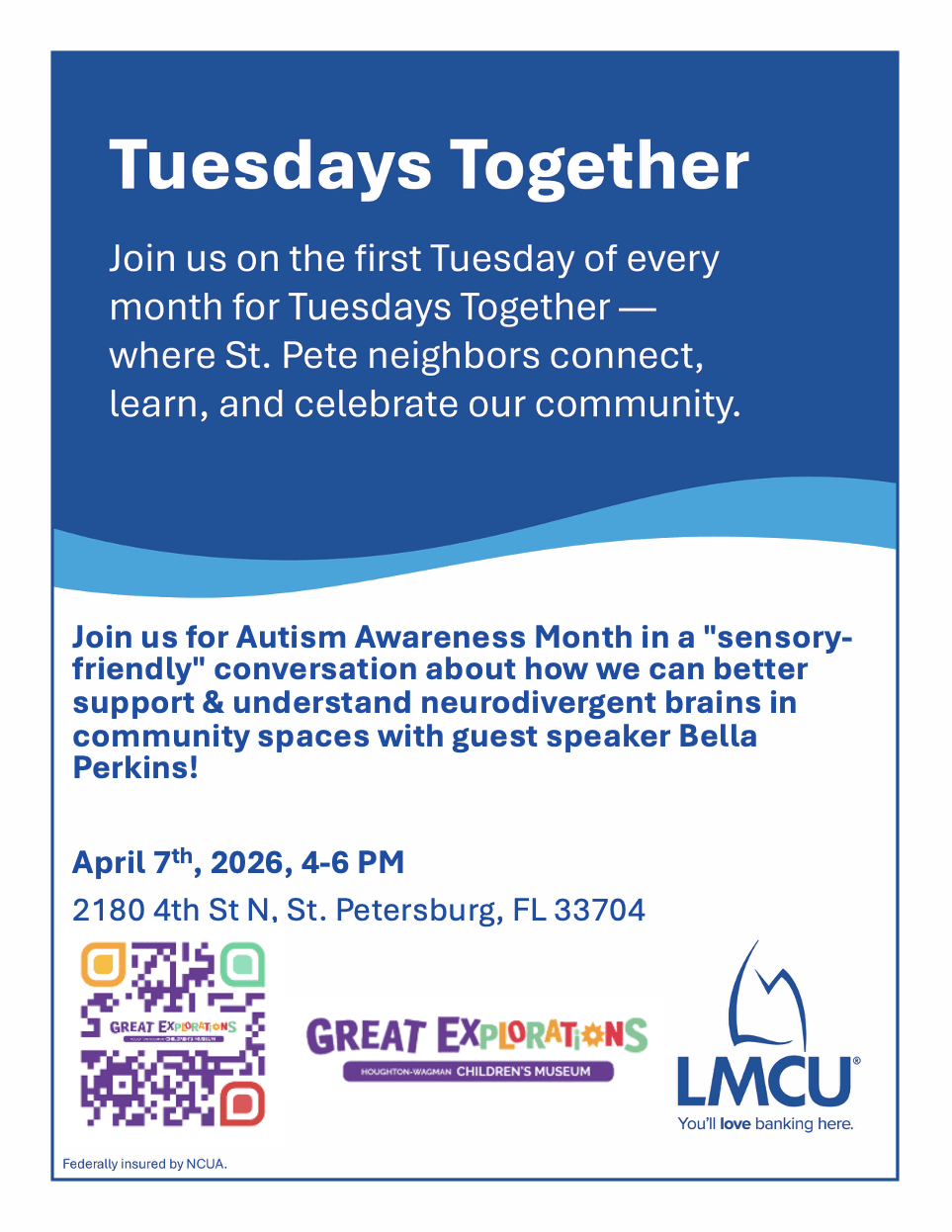 Join us on the first Tuesday of every month for Tuesdays Together - where St. Pete neighbors connect, learn, and celebrate our community.